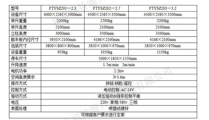 ▍汽車舉升機常規參數 / Product Parameter